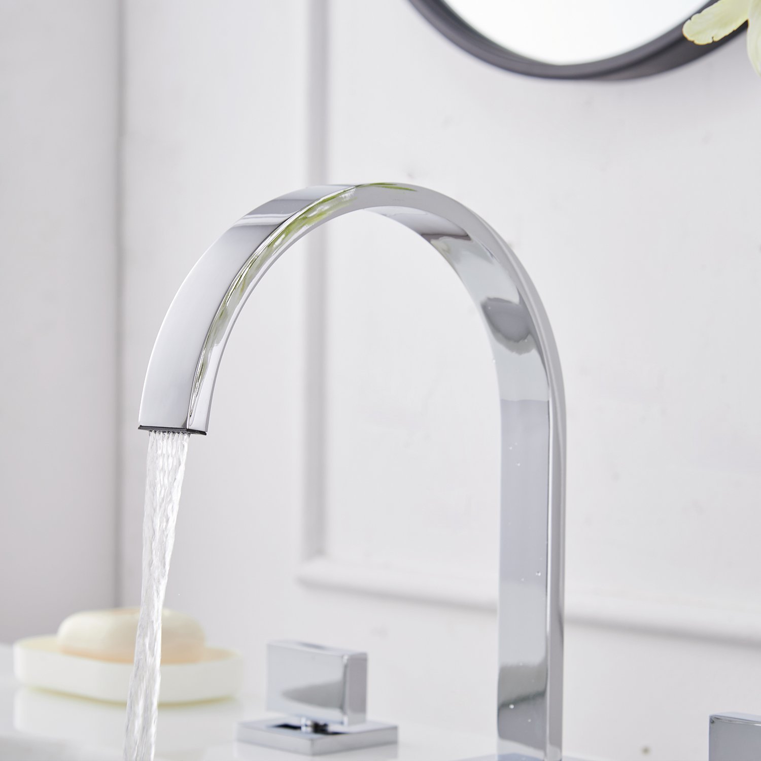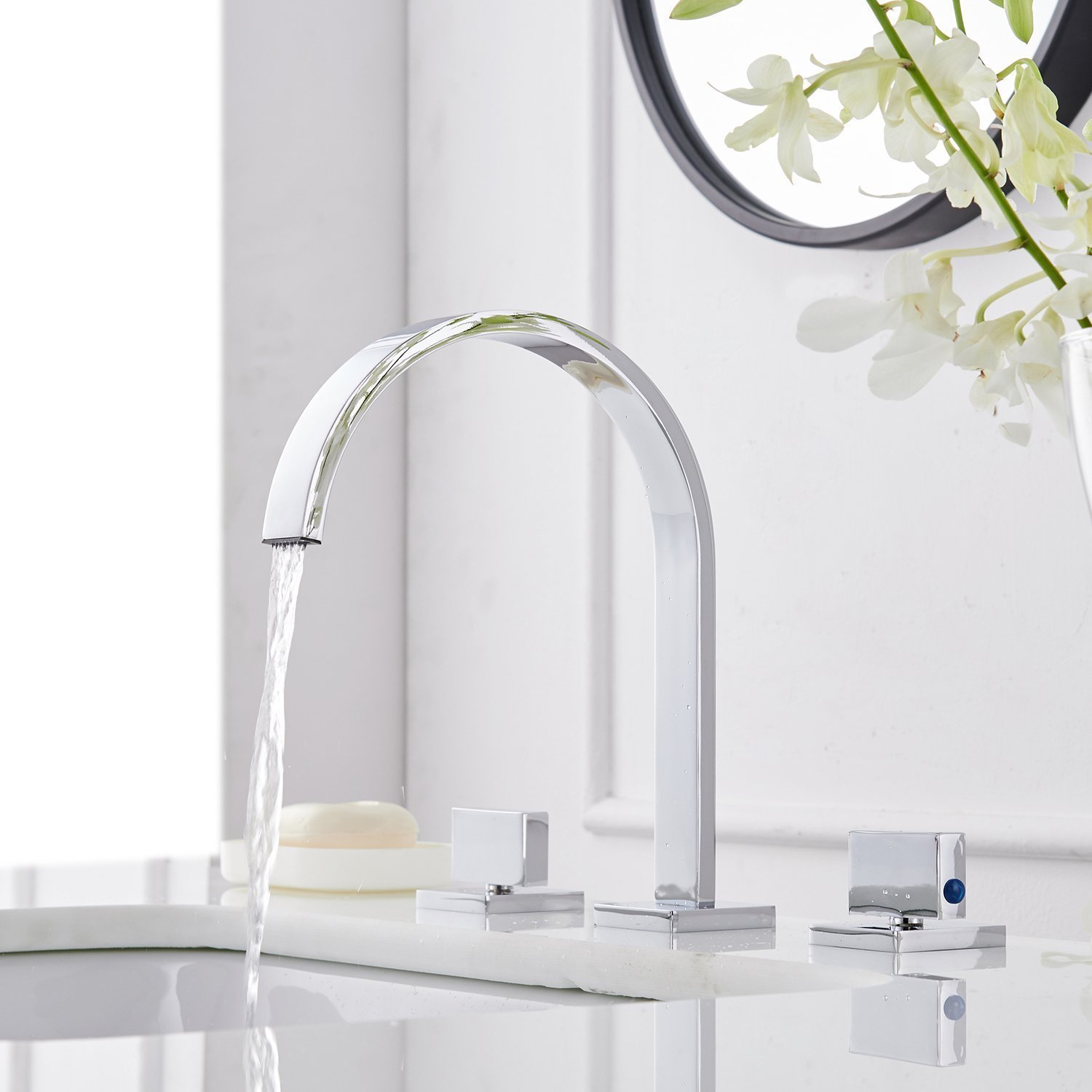 Oil Faucet Sink Bathroom Widespread Light Led Bathlavish Rubbed Lead Free Waterline Change Color Commercial Mount Deck Vanity Basin Hole 3 Handles 2 Waterfall Inch 8 16 Black Bronze Commercial Bathroom Sink Faucets Restroom Fixtures
