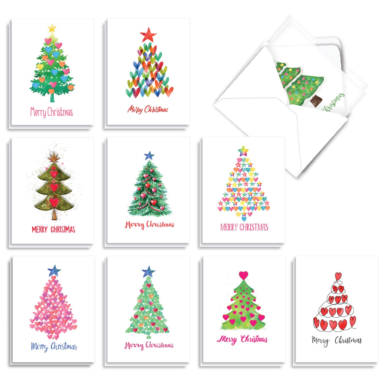 Amazon Com The Best Card Company 20 Merry Christmas Greeting Cards 10 Designs 2 Each Festive Holiday Assortment 4 X 5 12 Inch Holiday Hearts Am2916xsg B2x10 Office Products